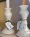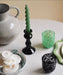 Traditionele kandelaar in donkergroen, wit en terracotta, met de hand gedraaid en geglazuurd.