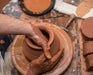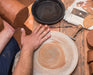Witte kleur, keramisch geglazuurd, met de hand gedraaid.