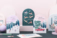 Als onderdeel van de Nevada-collectie heeft deze boho-kerstkaart een unieke stansvormige boog, een feestelijk rood en groen palet, en een charmant ontwerp van de Kerstman en rendieren. Ontworpen voor degenen die houden van een gezellige, nostalgische kerst, is het perfect voor klanten die op zoek zijn naar moderne feestkaarten, luxe kerstpapierwaren en boetiekachtige feestelijke ontwerpen. Ideaal voor cadeauwinkels, boekhand