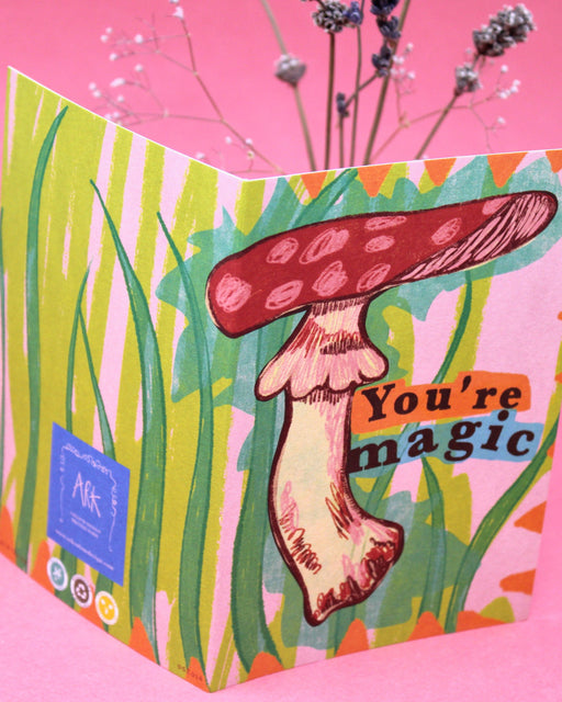 View full detailsOnze 'You're Magic Wenskaart' opnieuw geïntroduceerd, met een originele verhalende illustratie van ons geliefde paddenstoeldesign. Geniet van het u...