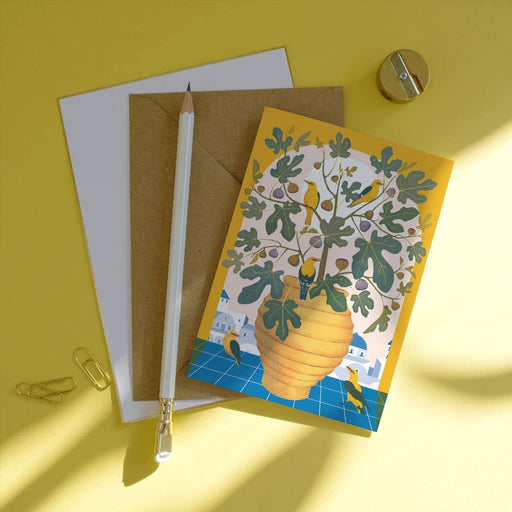 Afficher tous les détailsMediterrane charme straalt van deze levendige en opvallende geïllustreerde kaart, met een bloeiende citroenboom en een blik olijfolie. De blanco A...